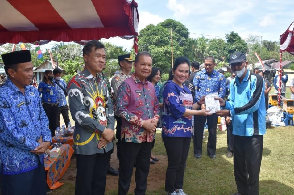 KUALA KAPUAS, inikalteng.com – Bupati Kapuas Ben Brahim S Bahat dampingi Anggota Komisi III DPR RI Dapil Kalteng Ary Egahni Ben Bahat menyerahkan 14 unit bantuan mesin pembuat pakan ikan kepada kelompok pembudidaya ikan di Desa Basarang, Kecamatan Basarang, Jumat (17/2/2023).