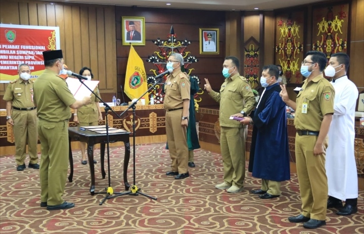 “Pelantikan Pejabat Fungsional dan Pengambilan Sumpah/Janji Pegawai Negeri Sipil di Instansi Pemerintah merupakan bagian dari kehidupan organisasi dalam rangka pemantapan dan peningkatan kapasitas kelembagaan, serta bagian dari pola pembinaan karier pegawai,” jelas Sekda Kalteng.