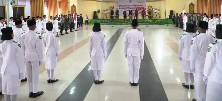NANGA BULIK , inikalteng.com – Bupati Lamandau H Hendra Lesmana, mengukuhkan 72 orang Pasukan Pengibar Bendera Pusaka (Paskibraka) Lamandau 2022. Upacara pengukuhan, dilaksanakan secara terbuka di GPU Lantang Torang, Lamandau, Selasa (16/8/2022).
