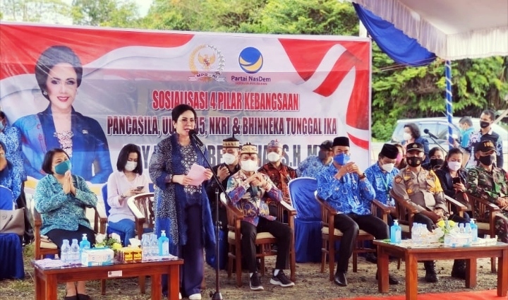 KUALA KAPUAS, inikalteng.com – Anggota Komisi 3 Dewan Perwakilan Rakyat Republik Indonesia (DPR RI) Daerah Pemilihan Provinsi Kalimantan Tengah, Ary Egahni Ben Bahat SH MH kembali menggelar Sosialisasi Empat Pilar (Pancasila, UUD 1945, NKRI, dan Bhinneka Tunggal Ika). Sosialisasi kali ini digelar di halaman Kantor Kecamatan Mantangai, Kabupaten Kapuas.