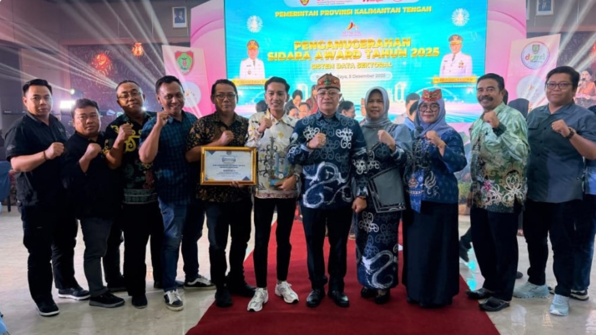 Penghargaan diserahkan secara resmi oleh Plt. Sekretaris Daerah Provinsi Kalimantan Tengah, Leonard S. Ampung, kepada Sekretaris Dinas SOSPMD Kabupaten Barito Utara, Dr. Sunarty, S.Pd., M.Pd., pada acara yang berlangsung di Aula Badan Pendapatan Daerah (BAPENDA) Provinsi Kalimantan Tengah, Jumat (05/12/2025).