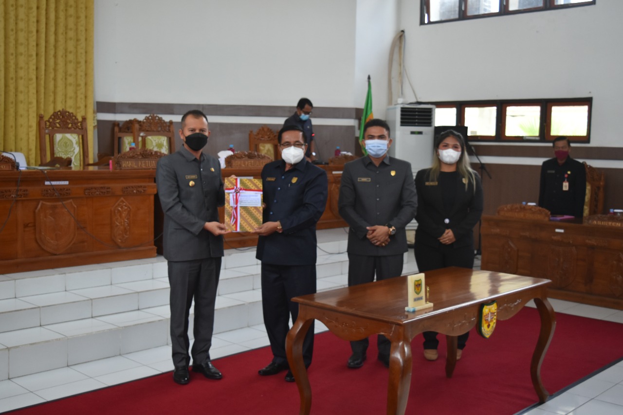 Penandatanganan saat rapat paripurna ke 7 masa persidangan I tahun sidang 2021 di ruang rapat DPRD Gumas, Rabu (17/11/2021). Dihadiri unsur Forkopimda, anggota DPRD, Sekda Yansiterson, Assisten II dan III, sejumlah pejabat eselon II dan III, staf ahli Bupati dan lainnya.