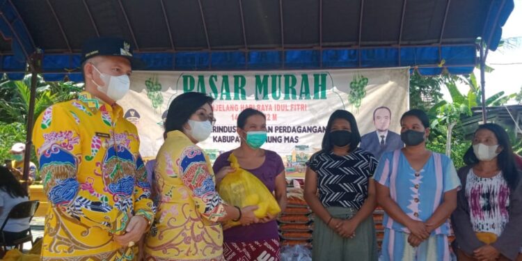 KUALA KURUN, inikalteng.com – Bupati Gunung Mas (Gumas) Jaya S Monong berharap operasi pasar murah mampu menstabilkan harga bahan pokok yang biasanya naik menjelang hari raya keagamaan.
