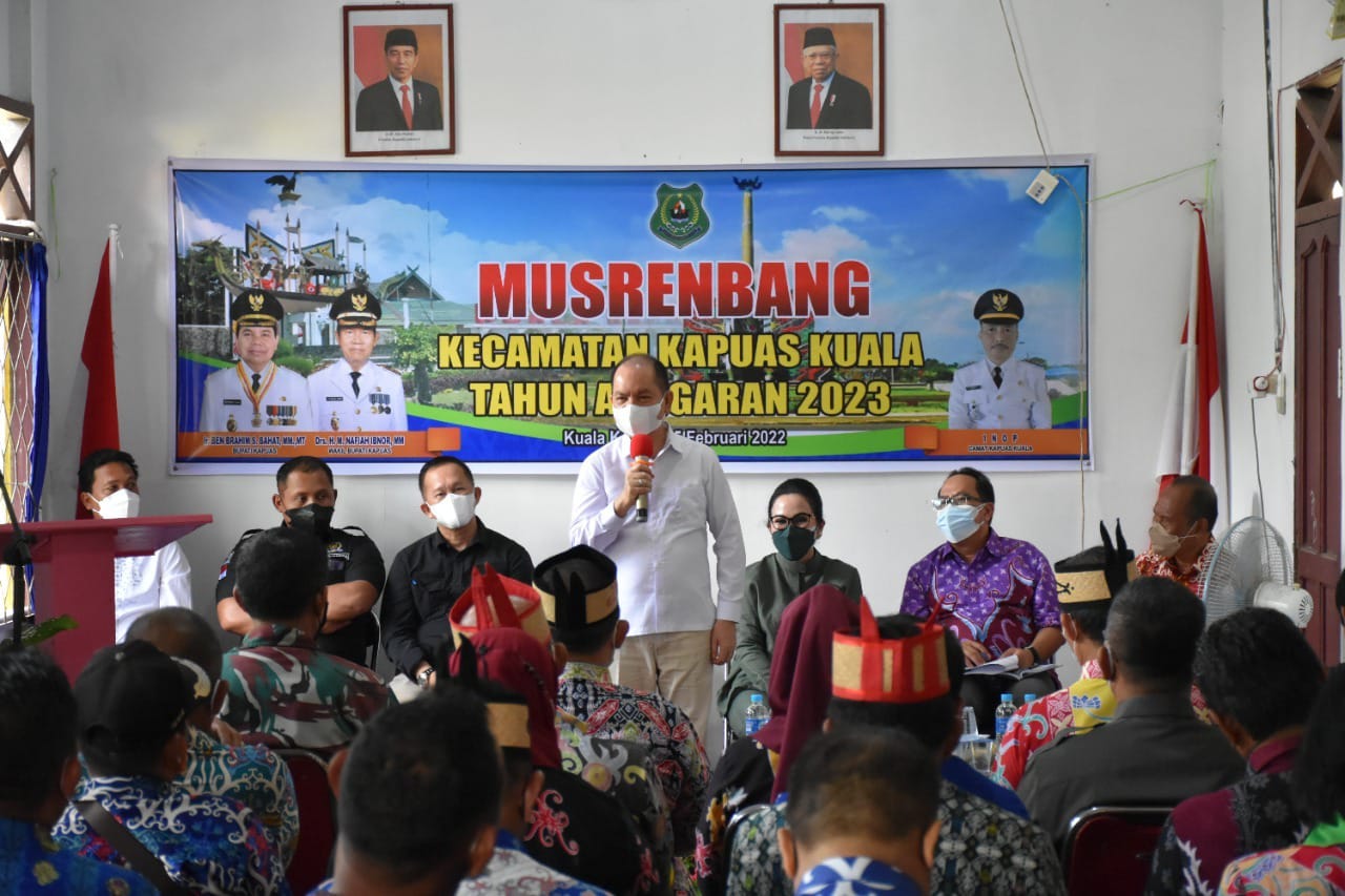 KUALA KAPUAS, inikalteng.com – Kegiatan Musyawarah Rencana Pembangunan (musrenbang) Rencana Kerja Pemerintah Daerah (RKPD) di Kabupaten Kapuas kembali berlanjut. Kali ini musrenbang dilaksanakan di Kantor Kecamatan Kapuas Kuala, Sabtu (5/2/2022).