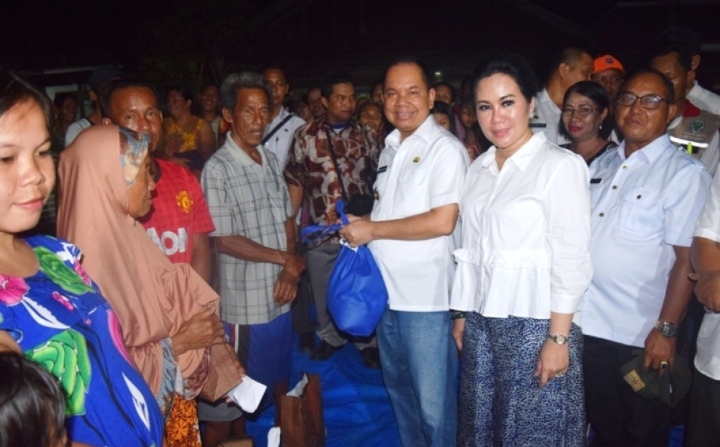 KUALA KAPUAS – Bupati Kapuas Ir Ben Brahim S Bahat MM MT bersama Ketua Tim Penggerak PKK Kabupaten Kapuas Ary Egahni Ben Bahat SH mengunjungi dan kembali memberikan bantuan kepada para korban terdampak Kebakaran rumah di Desa Saka Mangkahai RT 7 Kecamatan Kapuas Barat, Rabu (10/10/2020) malam.