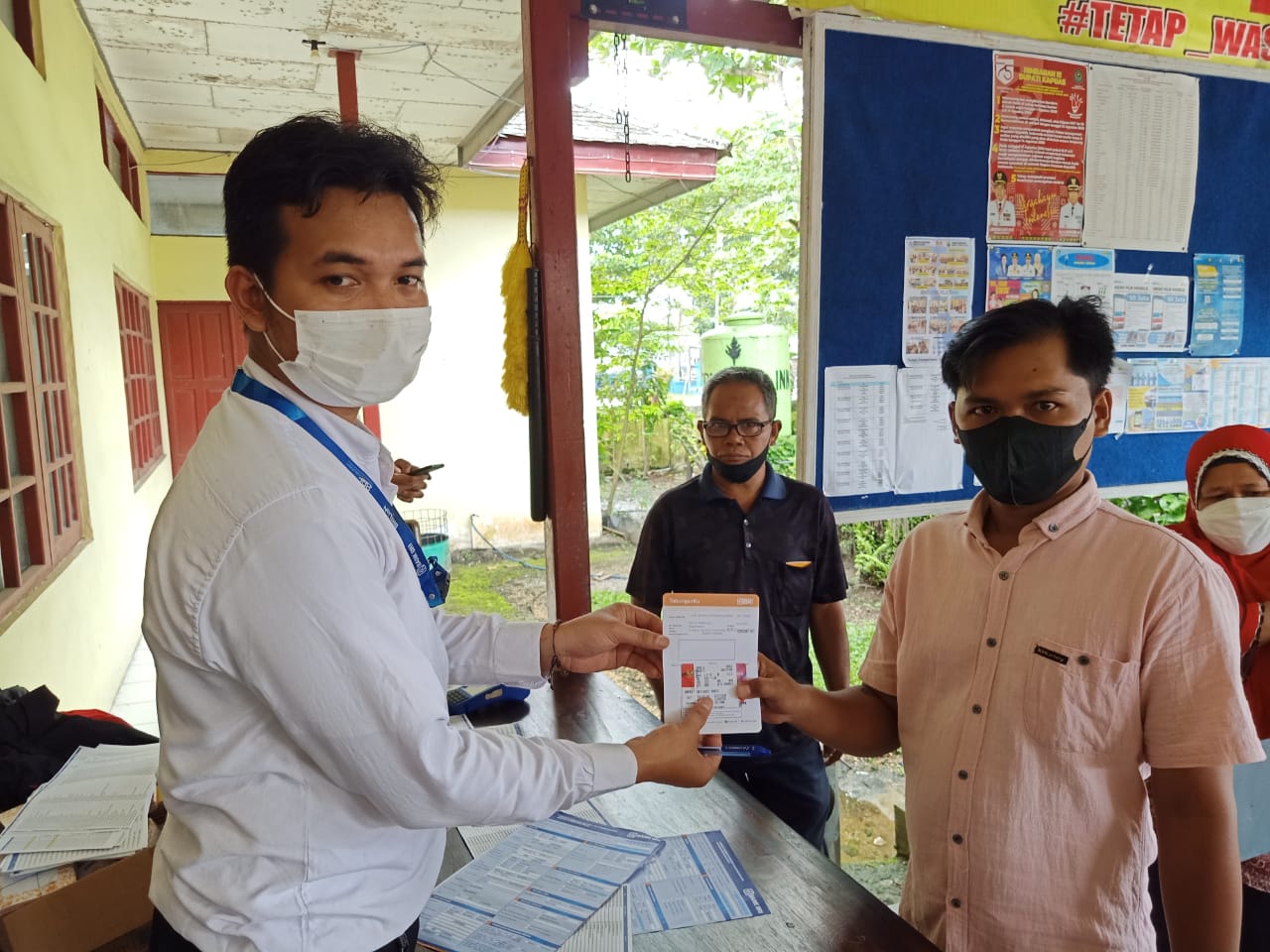 Kegiatan pembagian kartu BPNT ini berlangsung di lokasi gerai vaksin, tepatnya di depan Kantor Camat Selat, Jalan Tambun Bungai, Kuala Kapuas, Senin (8/11/2021)