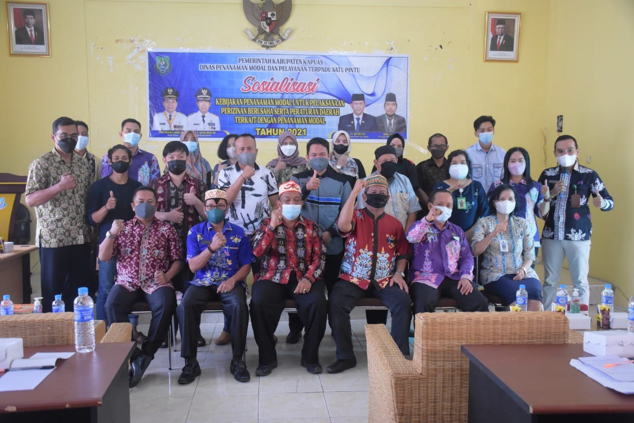 KUALA KAPUAS, inikalteng.com – Pemerintah Kabupaten Kapuas melalui Dinas Penanaman Modal dan Pelayanan Terpadu Satu Pintu (DPMPTSP) menggelar sosialisasi kebijakan penanaman modal untuk pelaksanaan perizinan berusaha serta Peraturan Daerah terkait dengan penanaman modal di Aula Disdagperinkop dan UKM Kapuas, Kamis (25/11/2021).