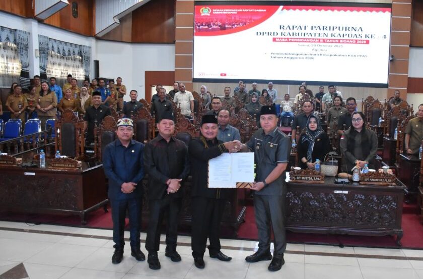 KUALA KAPUAS, inikalteng.com – Dewan Perwakilan Rakyat Daerah (DPRD) Kabupaten Kapuas bersama Pemerintah Kabupaten (Pemkab) resmi menyepakati dokumen Kebijakan Umum Anggaran serta Prioritas dan Plafon Anggaran Sementara (KUA-PPAS) untuk Tahun Anggaran 2026. Kesepakatan ini dicapai dalam Rapat Paripurna ke-4 Masa Persidangan III Tahun Sidang 2025 yang digelar pada Senin, 20 Oktober 2025.