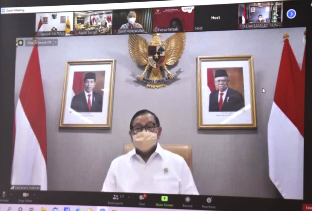 PALANGKA RAYA, inikalteng.com – Wakil Gubernur (Wagub) Kalteng H Edy Pratowo, menghadiri Peluncuran Buku Indonesia dan Covid-19 : Kerja Keras di Tengah Pandemi. Acara tersebut digelar secara hybrid dan disiarkan langsung dari kanal youtube Sekretariat Kabinet RI, dan dihadiri secara virtual dari Ruang Rapat Wagub Kalteng, Senin (7/3/2022).