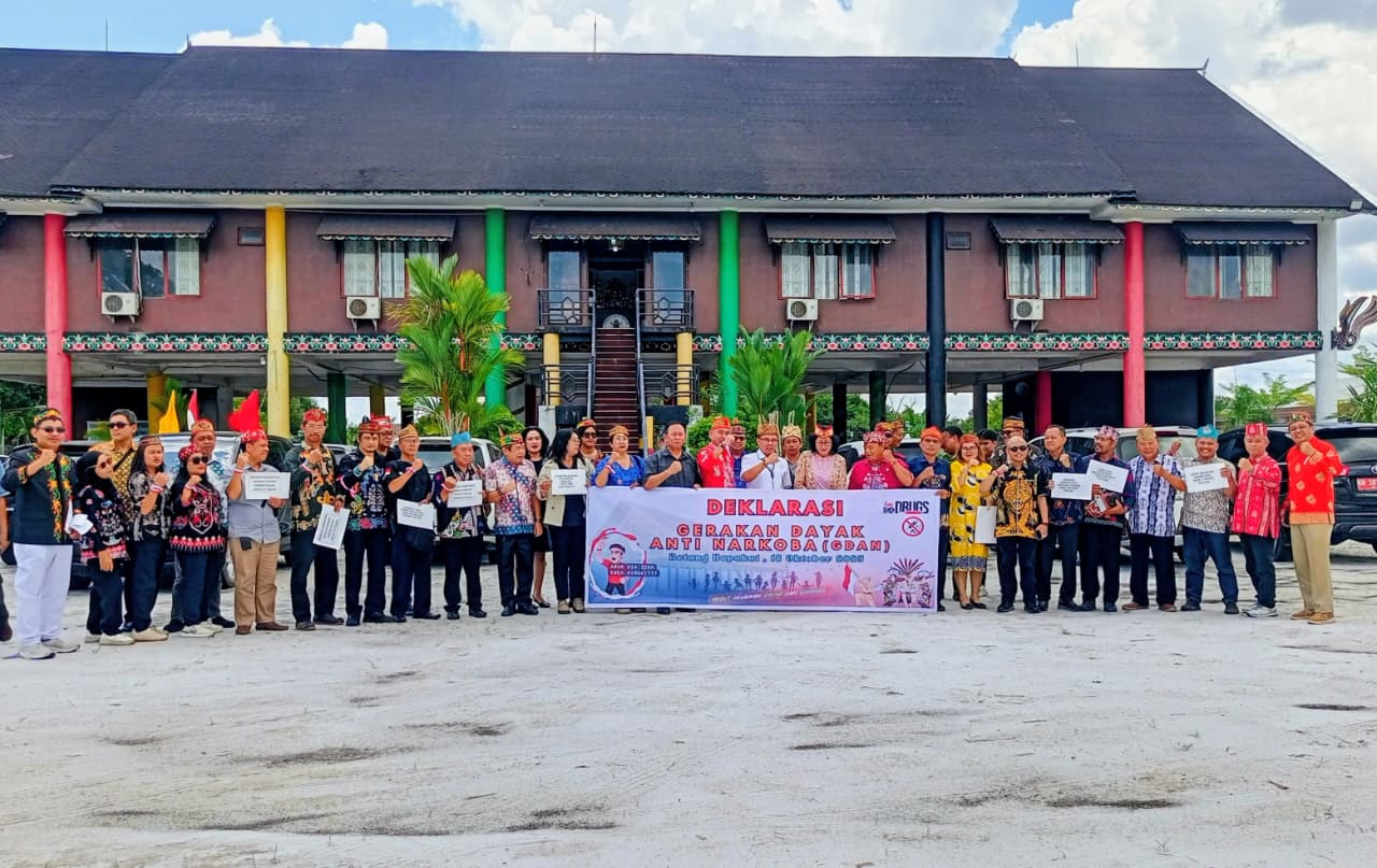 PALANGKA RAYA – Gerakan Dayak Anti Narkoba (GDAN) resmi dideklarasikan di Betang Hapakat, Sabtu (18/10/2025). Kegiatan ini menandai komitmen kuat masyarakat Dayak untuk memerangi peredaran narkotika yang semakin meresahkan hingga ke wilayah pedalaman Kalimantan Tengah. Deklarasi dipimpin oleh Ketua GDAN Sadagori Henoch Binti, dan dihadiri oleh Plt. Kepala BNN Kalteng Kombes Pol. Ruslan Abdul Rasyid, Ketua Harian DAD Kalteng Andrie Elia Embang, serta tokoh adat, pemuda, dan tokoh agama.