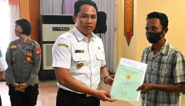 NANGA BULIK, inikalteng.com – Bupati Lamandau H Hendra Lesmana, secara simbolis menyerahkan 1.353 sertifikat tanah Program Pendaftaran Tanah Sistematis Lengkap (PTSL). Ribuan sertifikat tanah Program PTSL tersebut, diserahkan kepada warga Kecamatan Menthobi Raya, Kecamatan Bulik Timur, dan Kecamatan Belantikan Raya.