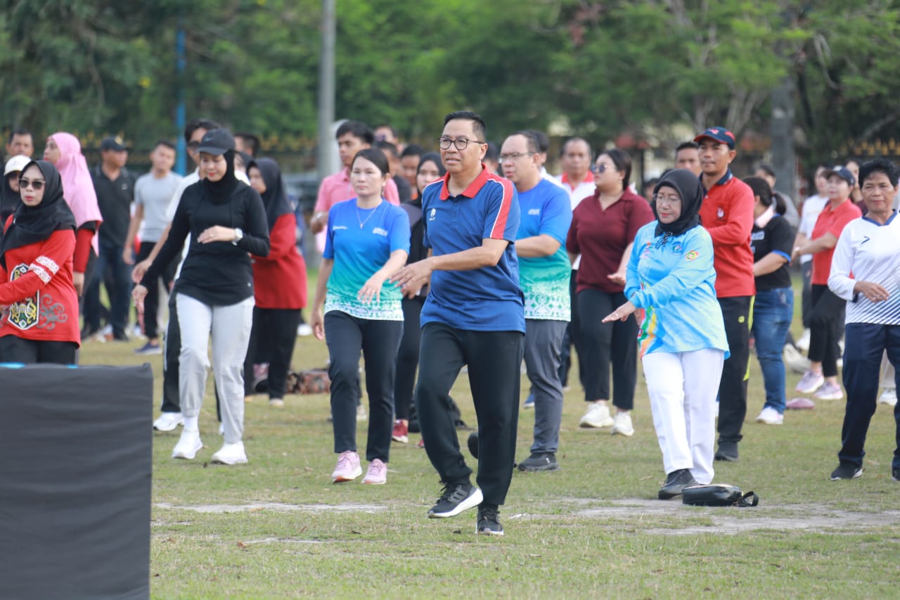 PALANGKA RAYA,inikalteng.com – Ratusan Aparatur Sipil Negara (ASN) di lingkungan Pemerintah Provinsi Kalimantan Tengah (Pemprov Kalteng) mengikuti kegiatan Senam Pagi Bersama yang digelar di Halaman Kantor Gubernur Kalteng, Jumat (17/10/2025). Kegiatan rutin ini diselenggarakan oleh Pemprov Kalteng sebagai upaya menjaga kebugaran jasmani serta menumbuhkan semangat kerja para ASN.