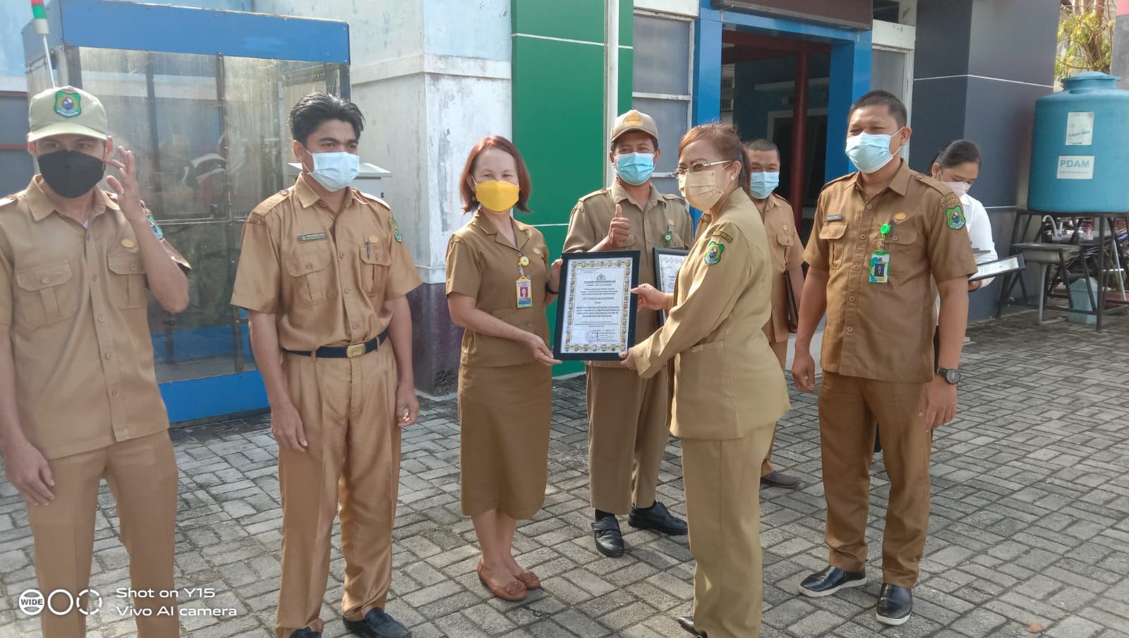 KUALA KAPUAS, inikalteng.com – Dinas Kesehatan Kabupaten Kapuas menyerahkan piagam penghargaan kepada lima puskesmas yang hadir mewakili 26 puskesmas. Penyerahan dilakukan di halaman kantor Dinas Kesehatan Kabupaten Kapuas usai pelaksanaan apel pagi, Senin (30/1/2022).