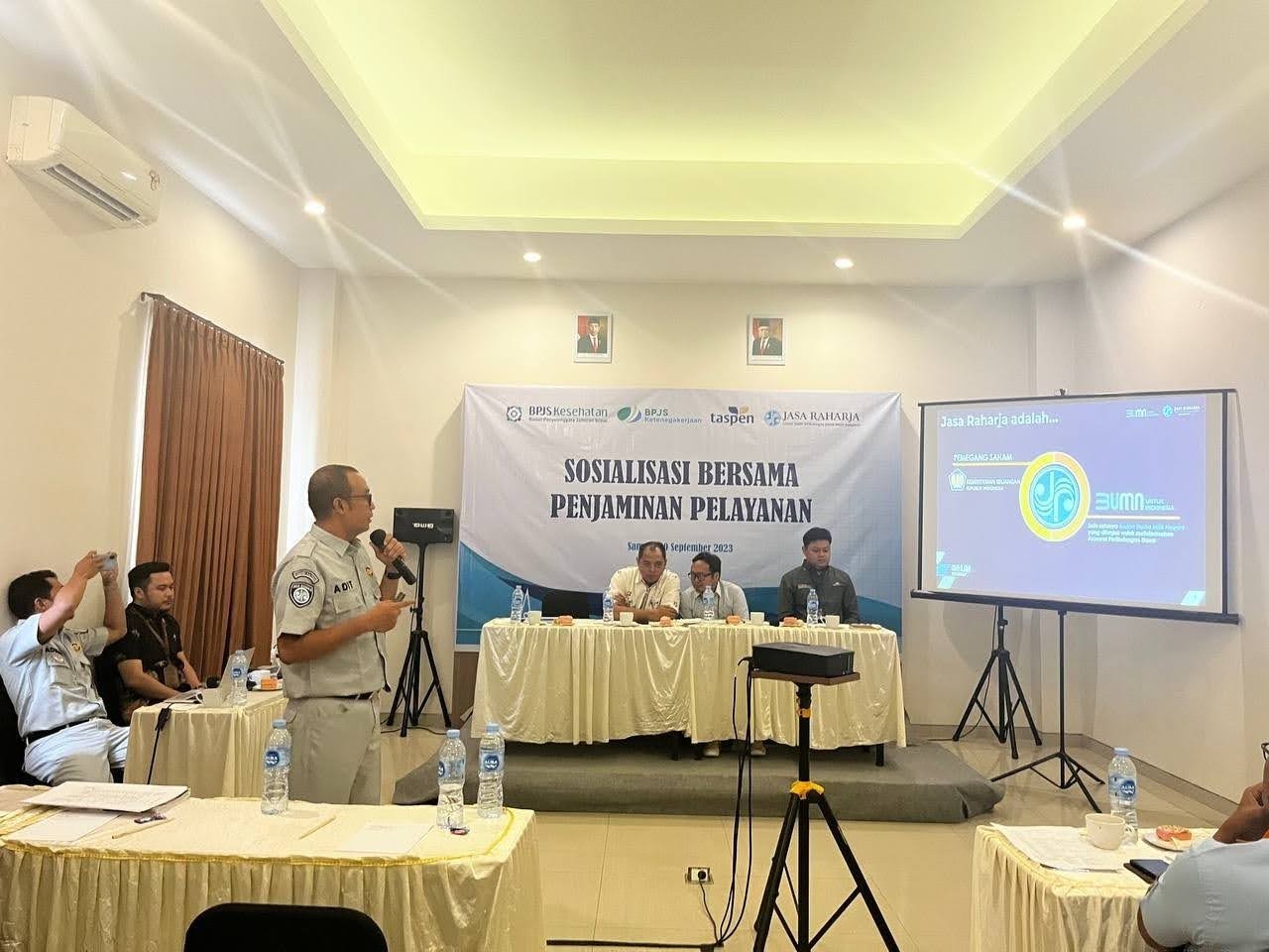 PALANGKA RAYA, inikalteng.com – PT Jasa Raharja Cabang Kalimantan Tengah (Kalteng) bersama dengan BPJS Kesehatan Sampit, BPJS Ketenagakerjaan Sampit dan Taspen Palangka Raya melakukan sosialiasi bersama mengenai penjaminan pelayanan Korban kecelakaan lalu lintas di Kabupaten Kotawaringin Timur di Hotel Midtown Xpress Sampit pada Rabu (20/09/2023).