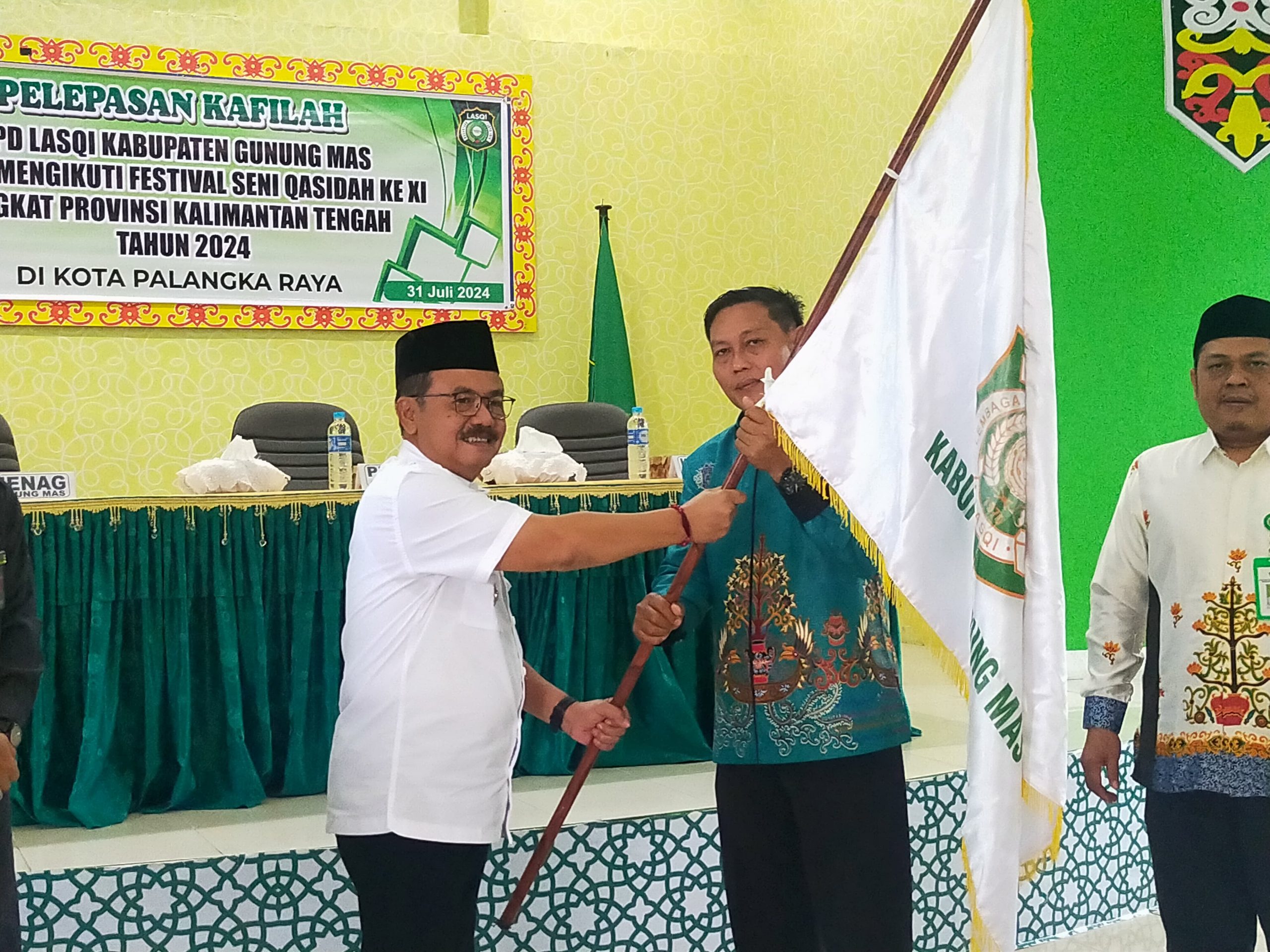 KUALA KURUN, inikalteng.com – Kontingen kafilah Kabupaten Gunung Mas mengikuti Festival Seni Qasidah (FSQ) XI tingkat Provinsi Kalimantan Tengah di Palangka Raya pada bulan Agustus tahun 2024 mendatang. Kontingen dilepas langsung Penjabat Bupati Gumas, Herson B Aden pada Rabu (31/7/2024).