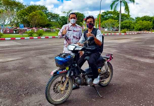 PURUK CAHU, inikalteng.com – Kendaraan roda dua Honda Astrea Grand adalah motor peninggalan orangtuanya, yang menemani perjalanan Megie Prawiro keliling Indonesia. Megie Prawiro sudah mengunjungi 20 provinsi di Indonesia, dimulai dari tahun 2017.