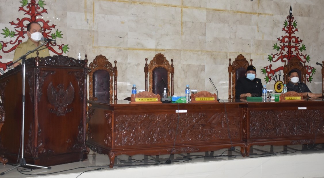 Rapat tersebut dengan agenda penyampaian jawaban Pemerintah Kabupaten (Pemkab) Kapuas atas pemandangan umum fraksi-fraksi pendukung Dewan terhadap Nota Keuangan Rancangan APBD tahun 2022.