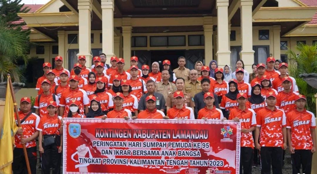 NANGA BULIK, inikalteng.com – Pj Bupati Lamandau Lilis Suriani melalui Asisten Pemerintahan dan Kesra Setda Lamandau Triadi Eka Asi Jaya Diputera, secara resmi melepas 65 orang kontingen Kabupaten Lamandau yang akan mengikuti kegiatan peringatan hari Sumpah Pemuda ke-95 dan Ikrar Bersama Anak Bangsa (IBAB) tingkat Provinsi Kalteng, di kabupaten Kapuas pada 26 hingga 29 Oktober 2023, di Aula Setda Lamandau, Selasa (24/10/2023).