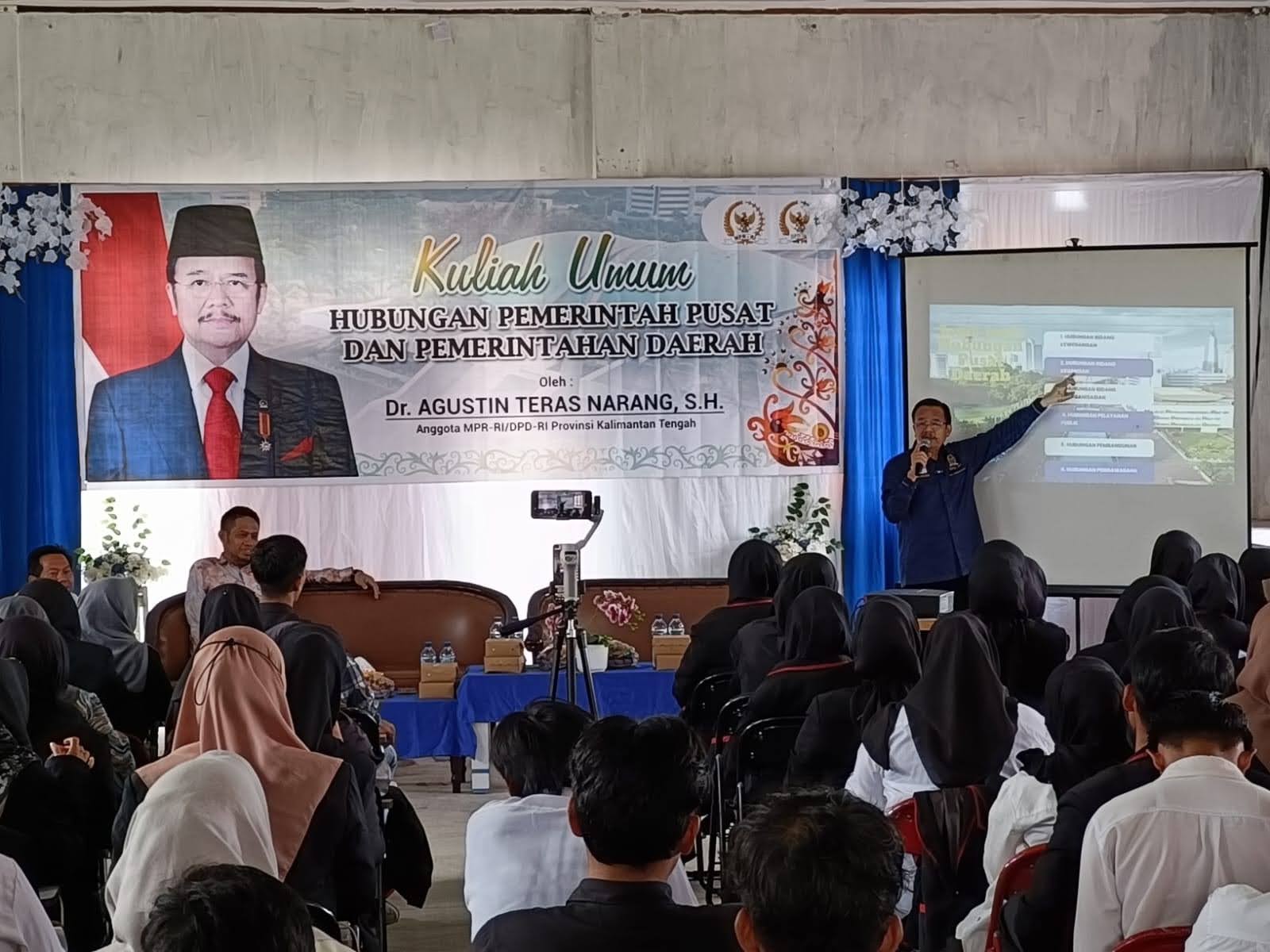 SERUYAN, inikalteng.com – Anggota DPD RI Pemilihan Kalimantan Tengah, Agustin Teras Narang, mengharapkan para mahasiswa di Politeknik Seruyan memahami bagaimana hubungan Pemerintah Pusat dengan Pemerintah Daerah dalam rangka melaksanakan berbagai kebijakan pembangunan.