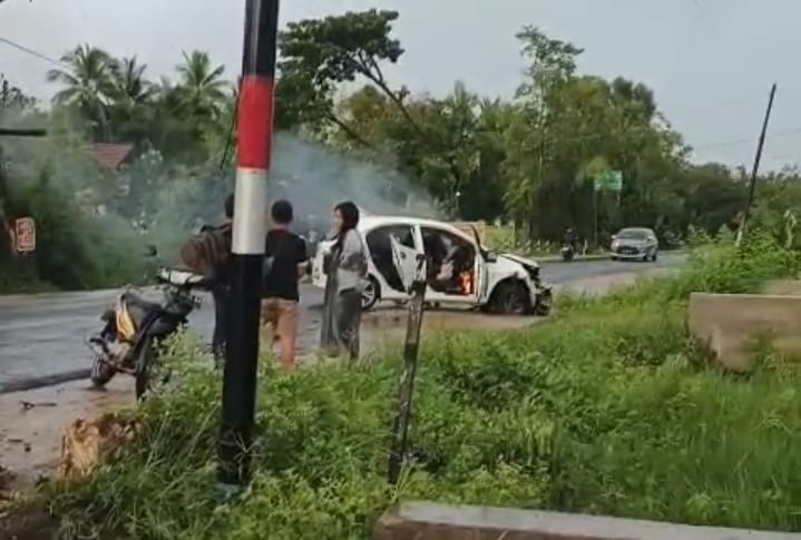 Informasi awal yang dihimpun menyebutkan, mobil tersebut diduga mengalami benturan sebelum akhirnya terbakar. Dugaan itu diperkuat dengan kondisi kendaraan yang bagian depannya tampak ringsek cukup parah.