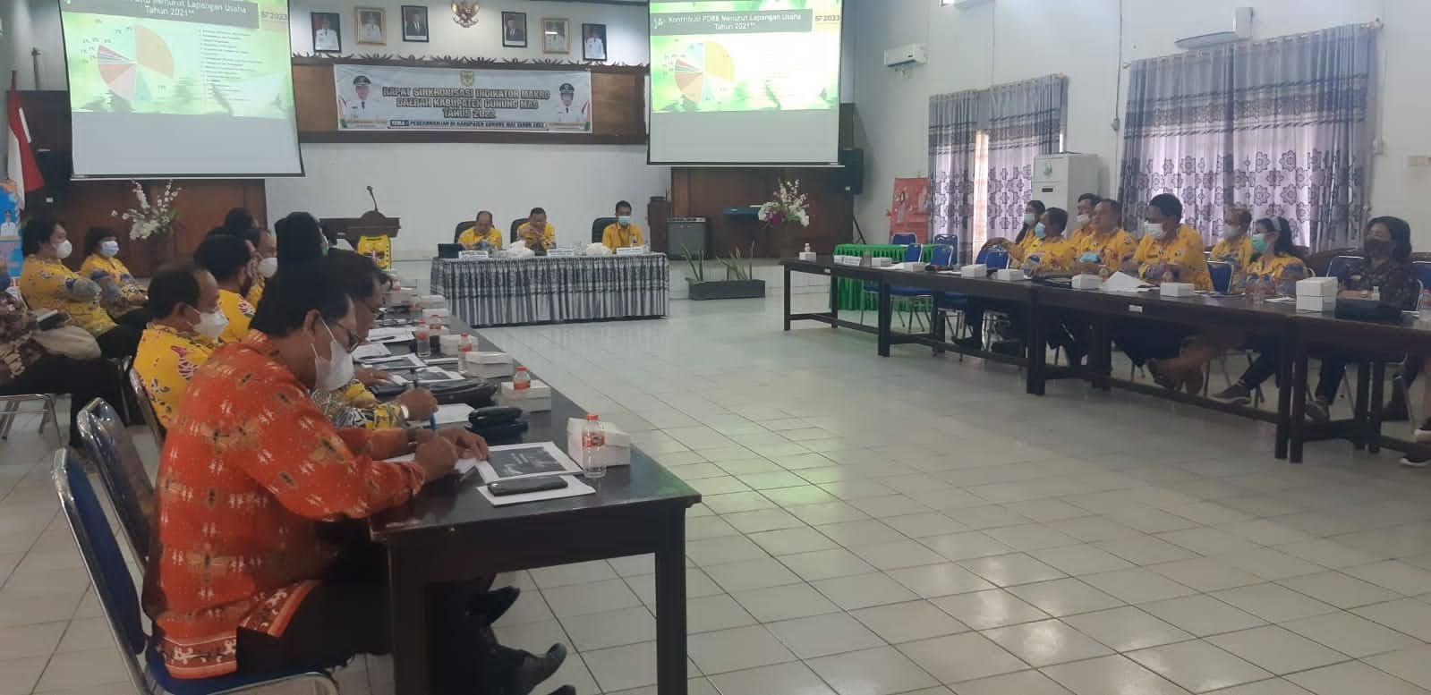 Para perangkat daerah Pemkab Gumas saat mengikuti kegiatan Sinkronisasi indikator Makro Daerah dan Sosialisasi Data PDRB di aula Bappedalitbang setempat, Kamis (28/7/2022).(Foto: Heriyadi)