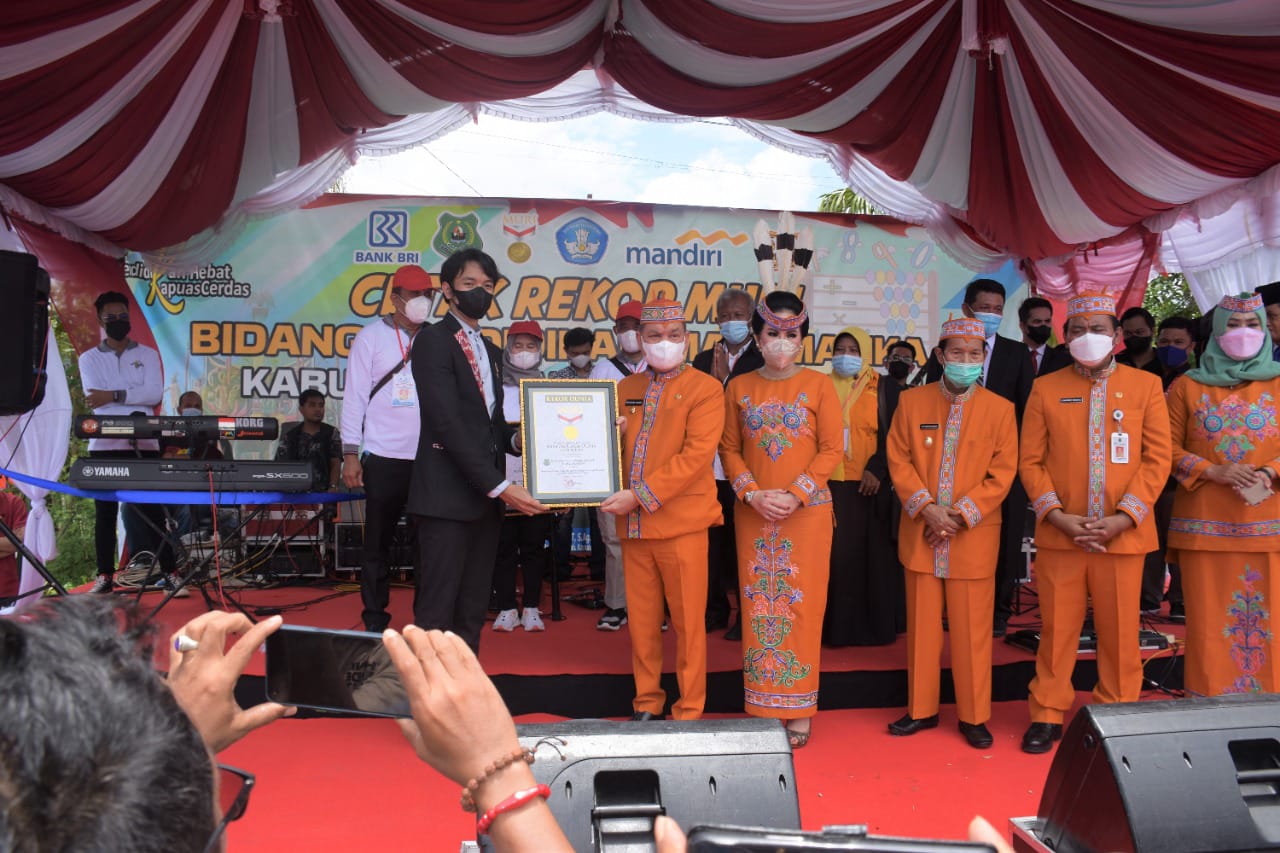 KUALA KAPUAS, inikalteng.com – Dalam rangka memperingati Hari Jadi ke- 216 Kota Kuala Kapuas dan Hari Ulang Tahun ke-71 Pemerintah Kabupaten Kapuas, Pemkab Kapuas melalui Dinas Pendidikan setempat, melakukan pencetakan Rekor Muri Indonesia dalam bidang pendidikan, Kamis (24/3/2022) di kawasan Stadion Panunjung Tarung, Kuala Kapuas.