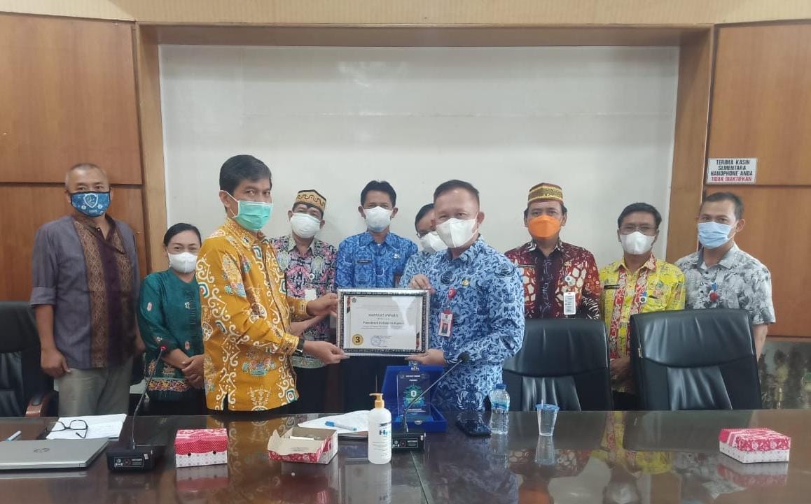 Penghargaan diserahkan Kepala Kantor Wilayah Direktorat Jendral Perbendaharaan Negara Hari Utomo kepada Sekretaris Daerah (Sekda) Kapuas Septedy mewakili Pemerintah Kabupaten Kapuas, di ruang rapat Kantor Bupati Kapuas, Jumat, 17 September 2021.