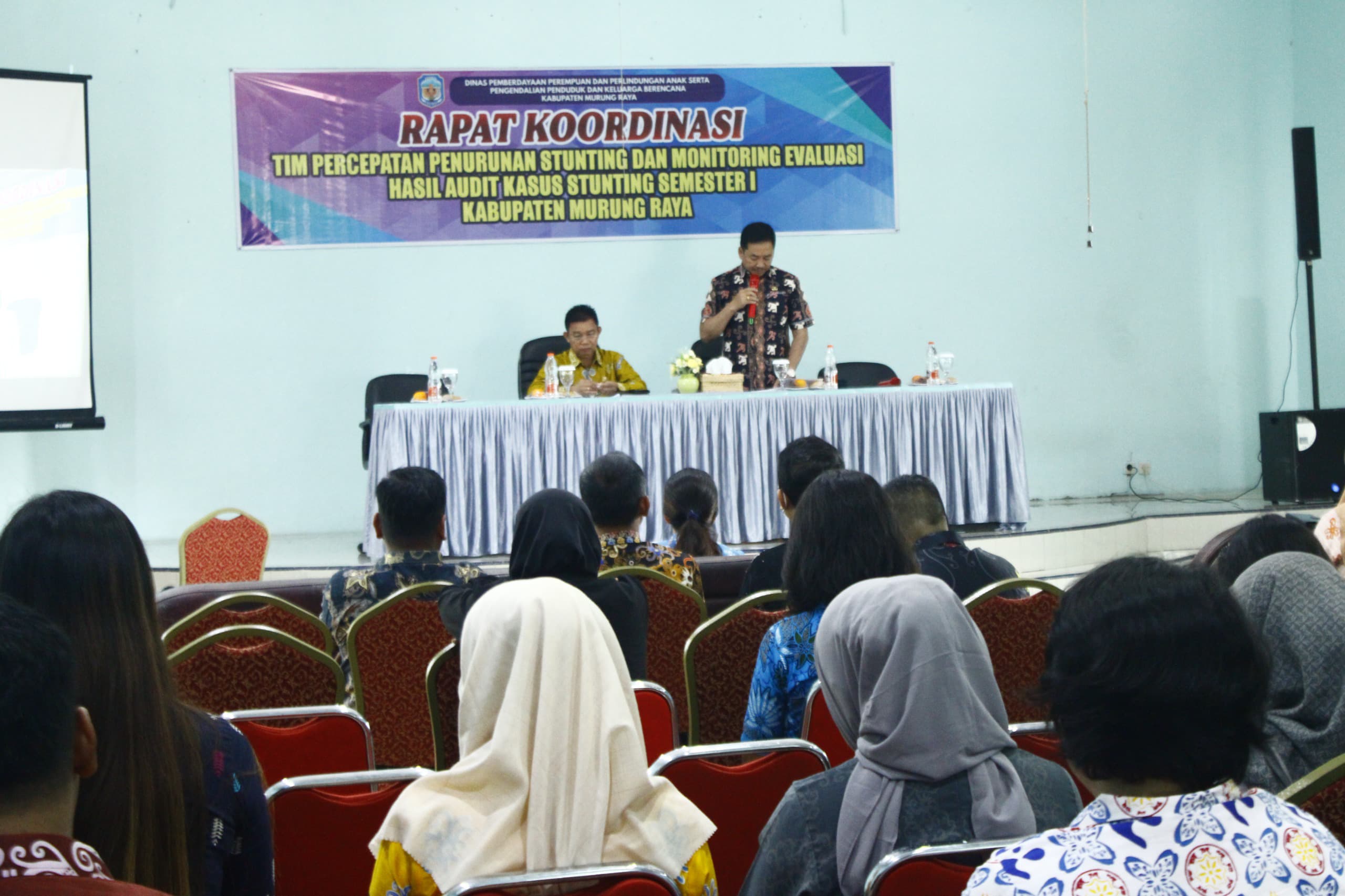 PURUK CAHU, inikalteng.com – Mengentaskan kasus stunting, Pemerintah Kabupaten (Pemkab) Murung Raya (Mura) melalui Dinas Pemberdayaan Perempuan dan Perlindungan Anak Pengendalian Penduduk dan Keluarga Berencana (DP3ADaldukKB) melaksanakan rapat koordinasi (rakor) Tim Percepatan Penurunan Stunting (TPPS) dan monitoring evaluasi (monev) Hasil Audit Kasus Stunting Semester I 2024 di Aula kantor TP PPK Kabupaten Mura, Kamis (6/6/2024).