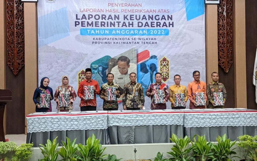 Penyerahan Laporan Hasil Pemeriksaan (LHP) atas LKPD Tahun 2022 oleh Kepala BPK RI Perwakilan Provinsi Kalteng kepada bupati/wali kota se-Kalteng, dihadiri oleh jajaran pejabat BPK RI Perwakilan Provinsi Kalteng, DPRD Kabupaten/Kota se-Kalteng dan undangan lainnya.