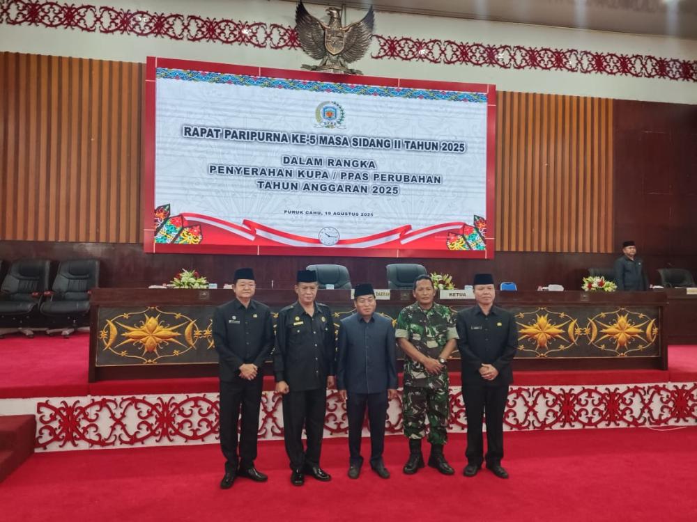PURUK CAHU, inikalteng.com — Pemerintah Kabupaten (Pemkab) Murung Raya melalui Plt. Sekretaris Daerah (Sekda) Sarwo Mintarjo secara resmi menyerahkan Rancangan Perubahan Kebijakan Umum Anggaran dan Perubahan Prioritas Plafon Anggaran Sementara (KUPA-PPAS) Tahun Anggaran 2025 kepada DPRD Murung Raya. Penyerahan dilakukan dalam rapat paripurna ke-5 masa sidang II di Gedung DPRD Murung Raya, Selasa (19/8/2025).
