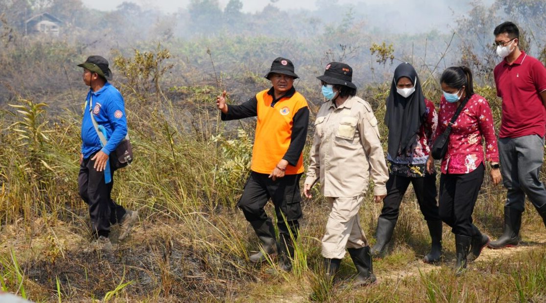 NANGA BULIK, inikalteng.com – Pj Bupati Lamandau Lilis Suriani didampingi Kalaksa BPBD Lamandau Hendikel, terjun langsung ke lapangan untuk meninjau lokasi kebakaran hutan dan lahan (Karhutla) di di belakang kantor DPMPTSP Lamandau dan lahan yang ada di Desa Batu Kotam, Kecamatan Bulik, Lamandau, Senin (2/10/2023).