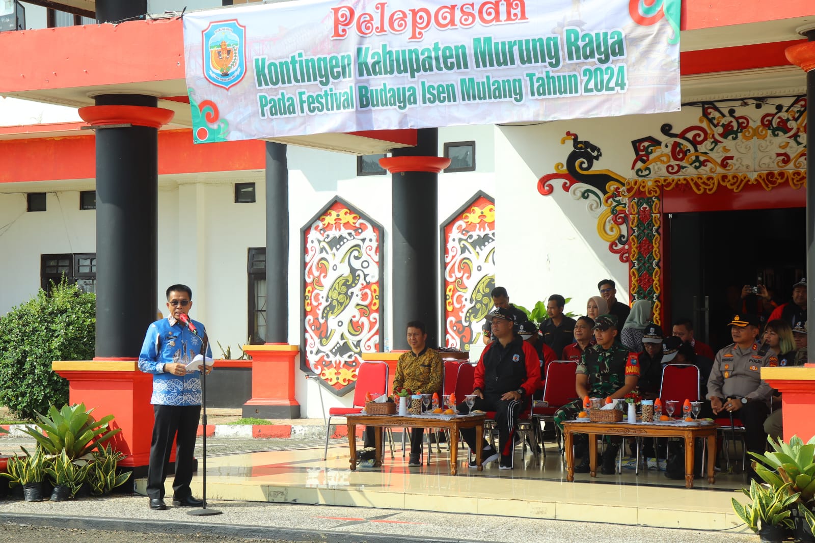 PURUK CAHU, inikalteng.com – Penjabat Bupati Murung Raya (Mura), Hermon secara resmi melepas kontingen Kabupaten Murung Raya dalam rangka mengikuti Festival Budaya Isen Mulang (FBIM) 2024, yang akan berlangsung di Kota Palangka Raya.
