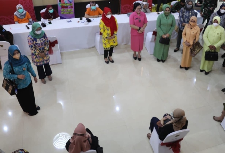 PALANGKA RAYA, inikalteng.com – Ketua Tim Penggerak PKK Provinsi Kalteng Yulistra Ivo Sugianto Sabran, bersama Ketua Organisasi Wanita Forkopimda Provinsi Kalteng, turut memantau pelaksanaan vaksinasi bagi ibu hamil, yang berlangsung di perkantoran Pemprov Kalteng di Palangka Raya, Kamis (26/8/2021) pagi.