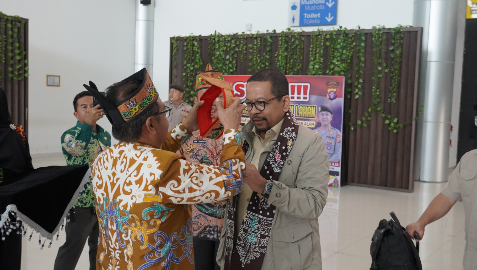 PALANGKA RAYA,inikalteng.com- Pelaksana Harian Sekretaris Daerah (Plh. Sekda) Provinsi Kalteng Herson B. Aden menyambut kedatangan Kepala Staf (Kastaf) Kepresidenan Indonesia Muhammad Qodari di Bandara Tjilik Riwut Palangka Raya, Kamis (30/10/2025) siang. Penyambutan diawali dengan pengalungan salampai dan pemasangan lawung, dimeriahkan iringan musik tradisional kecapi dan rabab Kalteng.