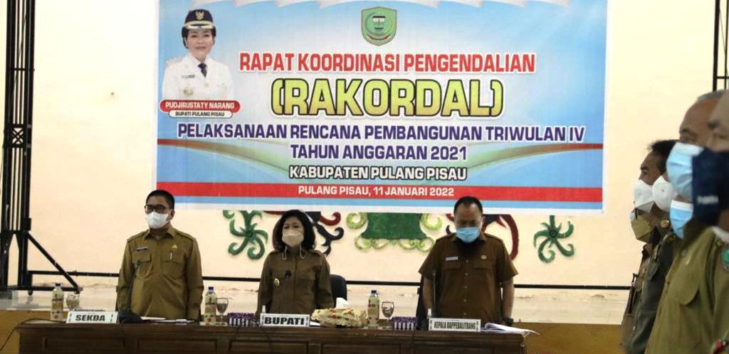 PULANG PISAU, inikalteng.com – Bupati Pulang Pisau (Pulpis) Pudjirustaty Narang, menghadiri sekaligus memimpin Rapat Koordinasi Pengendalian (Rakordal) Triwulan IV Pulpis Tahun Anggaran 2021, bertempat di Aula Bappedalitbang setempat, Selasa (11/1/2022).