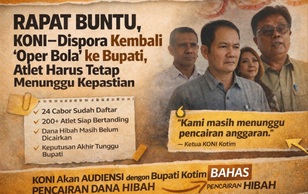 Pernyataan itu sekaligus menegaskan kegagalan rapat KONI dan Dispora Kotim hari ini. Tidak ada kejelasan angka, tidak ada kepastian waktu pencairan, bahkan tidak ada langkah konkret. Semua kembali digantung pada keputusan kepala daerah.