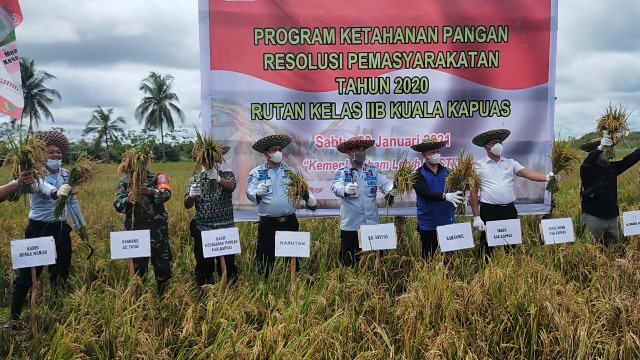 KUALA KAPUAS – Sekretaris Daerah (Sekda) Kabupaten Kapuas Septedy, menghadiri acara Panen Raya Program Ketahanan Pangan Resolusi Pemasyarakatan Tahun 2020 Rutan Kelas IIB Kuala Kapuas. Kegiatan ini dilaksanakan di Open Camp Rutan Kuala Kapuas, Desa Bunga Mawar, Kecamatan Pulau Petak, Sabtu (30/1/2021) pagi.