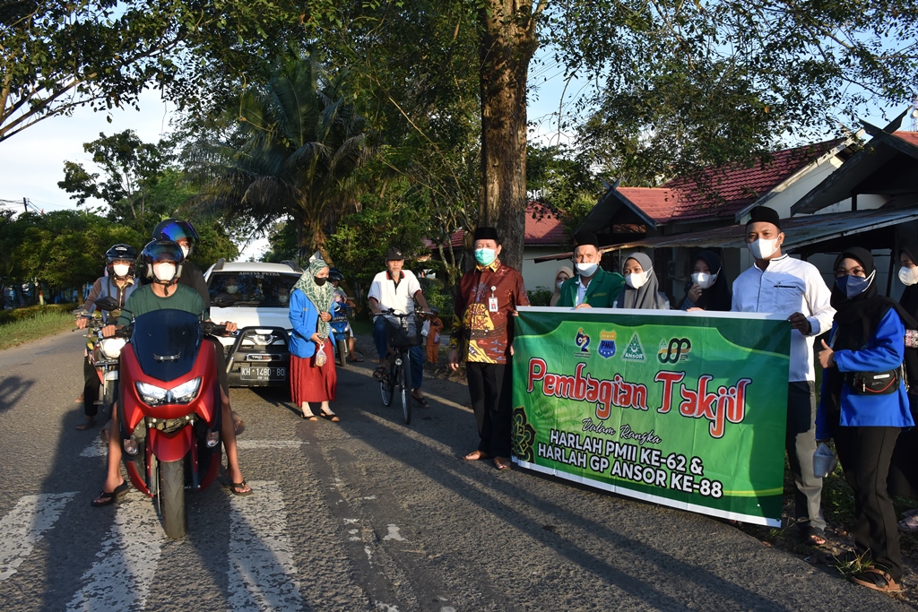 Pembagian takjil ini dilakukan dalam rangka Hari Lahir (Harlah) ke 62 PMII dan Harlah ke 88 GP Ansor, yang mana dilakukan langsung oleh Ketua Majelis Pembimbing Cabang H Junaidi didampingi Ketua GP Ansor H Noor Salim dan Sekretaris GP Ansor Tommy Saputra bersama sejumlah anggota.