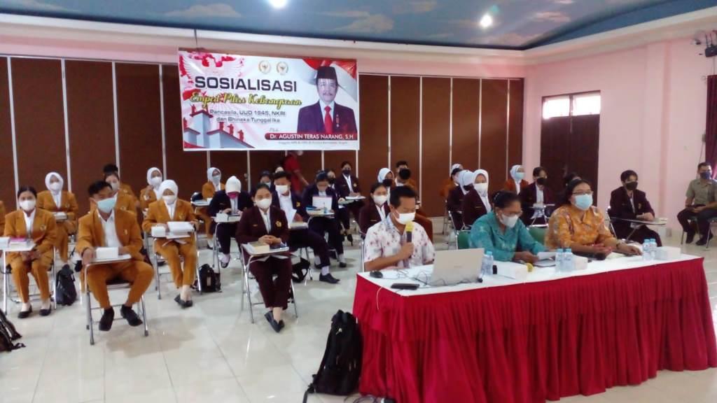 PALANGKA RAYA, inikalteng.com – Anggota Dewan Perwakilan Daerah Republik Indonesia (DPD RI) Agustin Teras Narang sosialisasi empat pilar kebangsaan kepada ratusan mahasiswa dan mahasiswi Sekolah Tinggi Ilmu Kesehatan (STIKES) Eka Harap Palangka Raya, Jumat (25/3/2022).