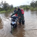 Anggota Babinsa Koramil 105 Dorong Motor Warga Melintasi Banjir