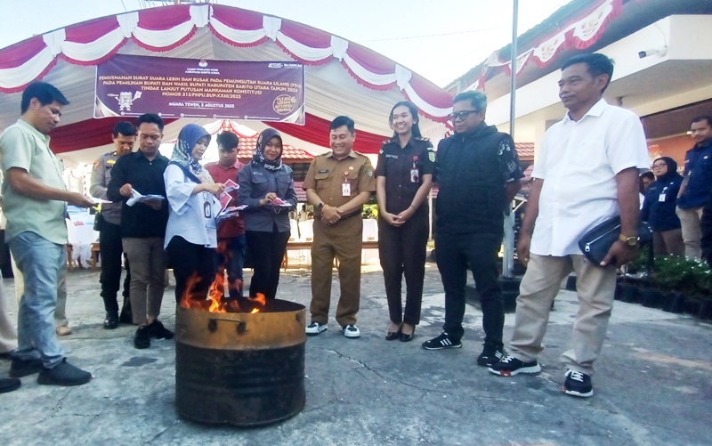MUARA TEWEH, inikalteng.com – Ketua Komisi III DPRD Barito Utara, H. Tajeri, mengajak seluruh warga aktif menggunakan hak pilih dalam Pemungutan Suara Ulang (PSU) Pilkada 2024. Ajakan ini disampaikan usai menghadiri pemusnahan 488 surat suara rusak dan lebih oleh KPU Barito Utara, Selasa (5/8/2025).
