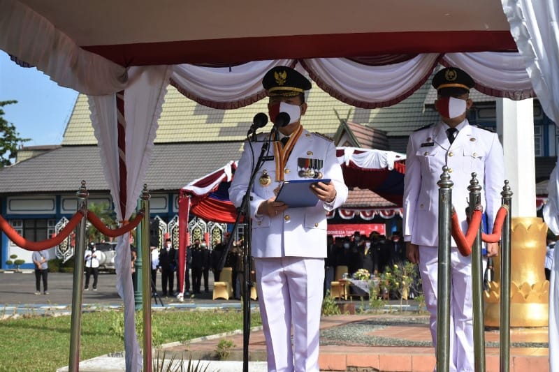 KUALA KAPUAS, inikalteng.com – Upacara Peringatan HUT Ke 76 RI di Kapuas berlangsung khidmat. Bertindak selaku Inspektur Upacara Bupati Kapuas Ben Brahim S Bahat dan pembaca Undang-Undang Dasar 1945 oleh Ketua DPRD Kabupaten Kapuas Ardiansah.