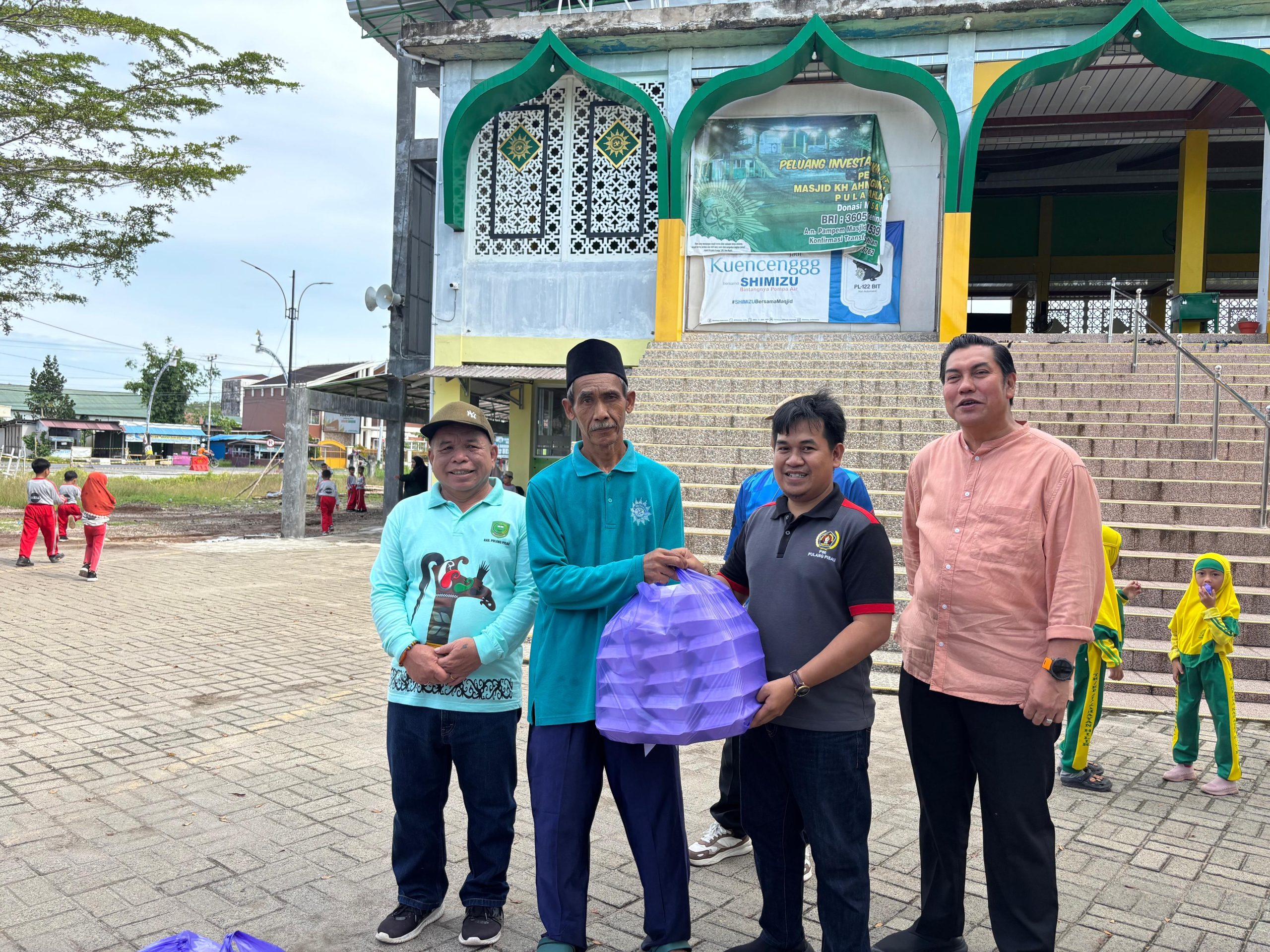 Kegiatan tersebut diwujudkan dengan penyerahan bantuan sembako kepada petugas kebersihan Tempat Pembuangan Akhir (TPA), pembagian nasi kotak kepada jemaah salat Jumat, serta pemberian sembako kepada para marbut Masjid KH. Ahmad Dahlan Pulang Pisau. Kegiatan berlangsung di kawasan Bundaran Belah Tugu Ikon Pulang Pisau Rey II.