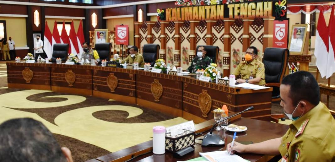 PALANGKA RAYA – Wakil Gubernur (Wagub) Kalteng Habib Ismail Bin Yahya, menghadiri Rapat Koordinasi Khusus (Rakorsus) Tingkat Menteri , tentang Evaluasi Kegiatan Pengendalian Kebakaran Hutan dan Lahan (Karhutla) 2020, serta Antisipasi Karhutla Periode Puncak Kemarau 2021 secara virtual, langsung dari Aula Jayang Tingang, Kantor Gubernur Kalteng, Selasa (9/2/2021).